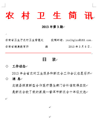 发布日期:2013-05-23 00:00:00浏览次数:14961来源:云南省卫生厅农卫处作者:云南省人口和卫生健康宣传教育中心