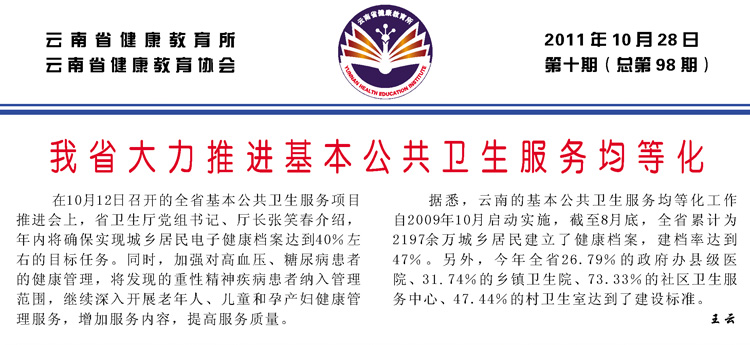 发布日期:2011-11-17 00:00:00浏览次数:15700来源:云南省人口和卫生健康宣传教育中心作者:云南省人口和卫生健康宣传教育中心