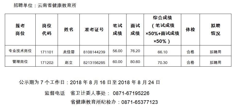 上一篇:云南省健康教育所2018年公开招聘工作人员综合成绩公示