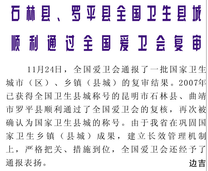 下一篇:2011年第12期:全国爱卫会命名一批“国家卫生城市(区)