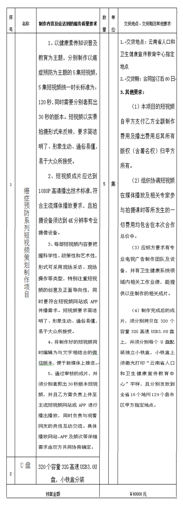 1.1项目名称:癌症预防系列短视频策划制作项目询价公告