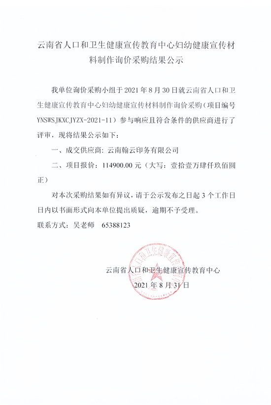 上一篇:云南省人口和卫生健康宣传教育中心慢性病及传染病系列宣传材料制作询价采购结果公示