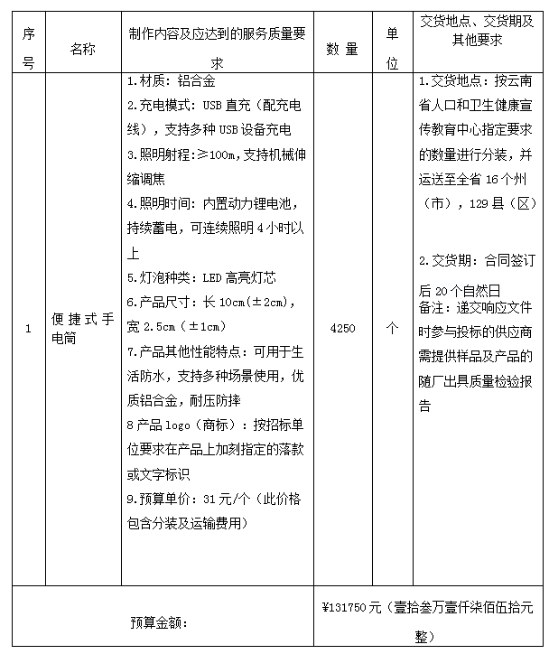 1.5采购内容及预算金额:131750元