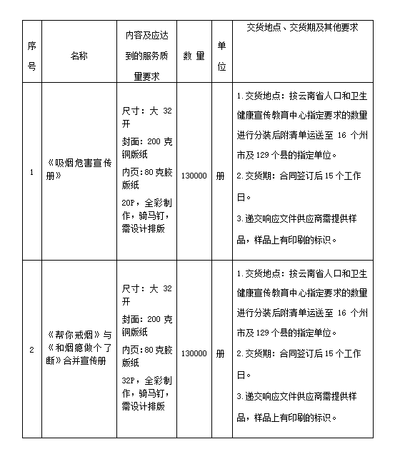 1.1项目名称:云南省人口和卫生健康宣传教育中心制作控烟宣传材料
