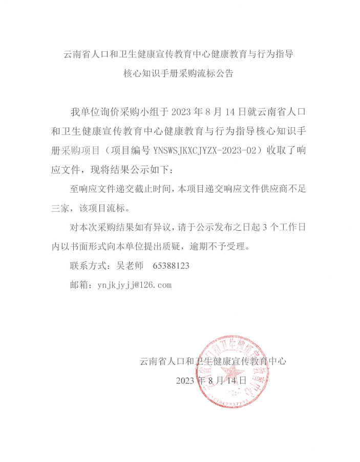 下一篇:云南省人口和卫生健康宣传教育中心健康教育与行为指导核心知识手册询价公告(第二次)