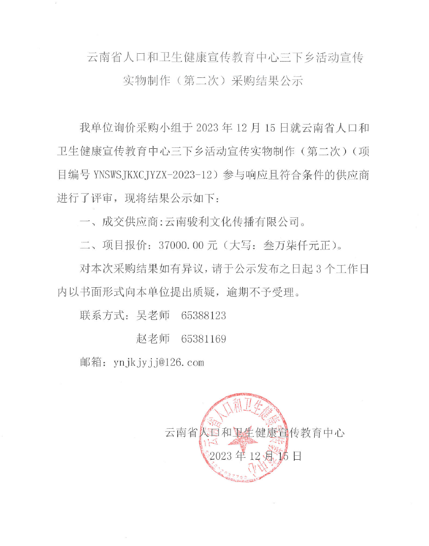 下一篇:云南省人口和卫生健康宣传教育中心基本公卫项目宣传用品制作终止采购公告