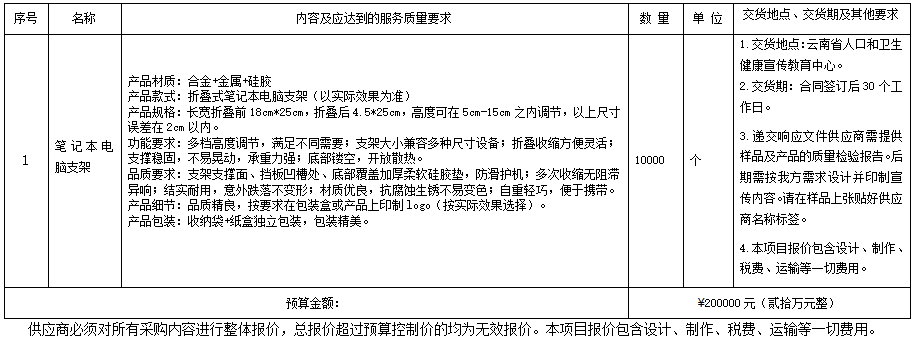 云南省人口和卫生健康宣传教育中心烟草流行监测用宣传物品询价公告