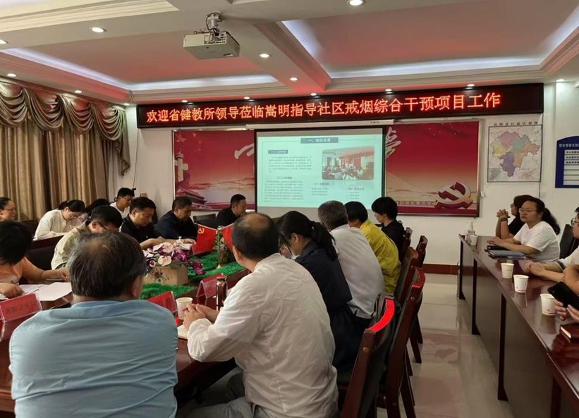 6月26日上午,云南省人口和卫生健康宣传教育中心副主任吴智深带队与昆明市疾病预防控制中心相关人员一行到昆明市嵩明县嵩阳街道晁家社区,对社区戒烟综合干预试点相关工作的进展情况进行现场落实。