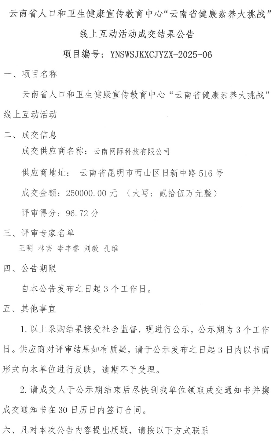 上一篇:“云南省健康素养大挑战”线上互动活动竞争性磋商公告